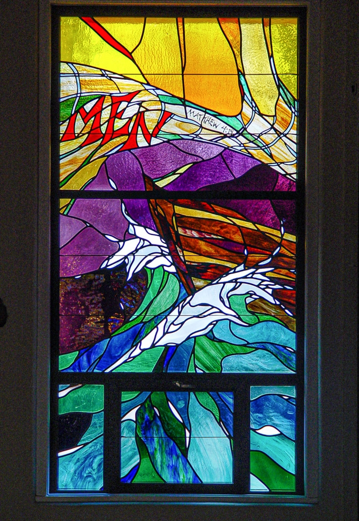 The “Call of the Fishermen” window series comprises approximately 325 sq. ft. of stained glass at St. Andrew Apostle Catholic Church.